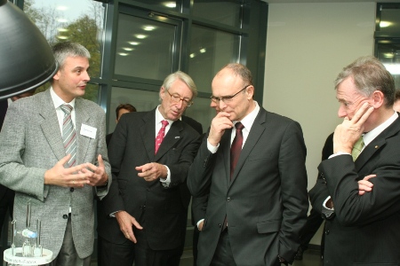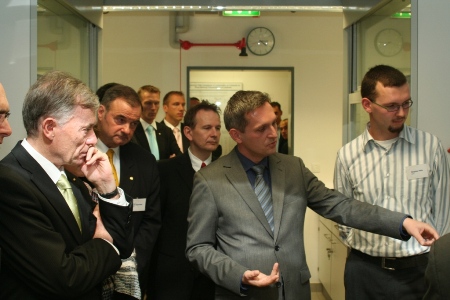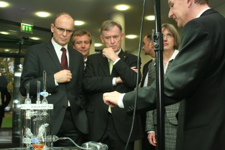 Dr. Junge zeigt dem Präsidenten der Leibniz-Gemeinschaft Prof. Rietschel, dem Ministerpräsidenten Erwin Sellering und dem Bundespräsidenten das H2-Auto