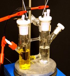 One focus of the thematic group is the development of electrochemical syntheses of organic compounds. Our extensive equipment and expertise allow us to adapt the experimental setup and the type of reaction control to a variety of different synthetic challenges. Thus, divided and undivided cells are used as required, which can be operated in potentiostatic or galvanostatic mode. If necessary, the preparative work is supplemented by electroanalytical studies, which provide both mechanistic insights and information that is useful for the optimization of reaction parameters. As a further tool, we use homogeneous electrocatalysts (mediators) or catalytically active electrode materials if required. This approach allows both selectivity control and lowering of the kinetic overpotential. To accelerate optimization, screening setups are used that allow up to eight electrolyses to be carried out simultaneously per apparatus. For up-scaling of the reaction, various flow cells are available, which can be coupled with different analytical methods for online product analysis.