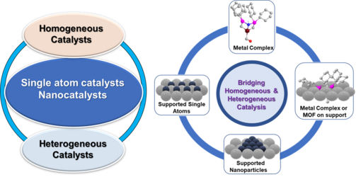 Catalysis is a key technology that governs the chemical processes with extensive applications in the production of all kinds of chemicals and life science molecules as well as daily life products. Thus, the modern chemical synthesis and industrialized world mainly relies on catalysis and would be inconceivable without the applicability of catalytic processes. As a result, >80% of chemicals produced globally are manufactured using catalytic processes. Thus, the development of a ‘right’ and ‘ideal’ catalytic system is crucial. We focus on the development of both heterogeneous and homogeneous catalysts for organic synthesis, industrial processes, valorization of renewable feedstocks and conversion of waste-materials. Homogeneous complexes are highly selective and active and but not very stable and are difficult to recycle or reuse. On the other hand, traditional heterogeneous materials are quite stable and can be conveniently recyclable, but these ones exhibit less selectivities and activities. Considering the individual features of these catalysts, it is difficult to achieve an “ideal” catalytic system, which should be very stable, easily recyclable and reusable, as well as highly active and selective. Thus, the creation of synergies between homogeneous and heterogeneous catalysis aspects is highly essential to design an ‘ideal’ catalyst. In this regard, our group is dealing on how to combine both homogeneous and heterogeneous catalysis to create ‘break through’ catalysts to bridge the gap between both of these aspects. Particularly, we focus on the development of advanced heterogeneous catalytic materials based on single atoms and nanoparticles, which should behave like heterogeneous materials with regard to stability and recycling, and homogeneous complexes with respect to activities and selectivities. In addition to heterogeneous materials, we develop homogeneous catalysts based on organometallic and molecularly defined complexes. Our more prominence is on the preparation of catalysts based on earth abundant metals (Fe, Mn, Co, Ni, Cu) due to their inherited advantages such as more abundance, less expansive and significantly less toxicity. From the past decade, we developed a number of non-noble metal-based single atoms, nanoparticle and molecularly defined catalysts and applied for industrially relevant reactions as well as biomass valorization and upscaling of plastics- and biogenic- waste.