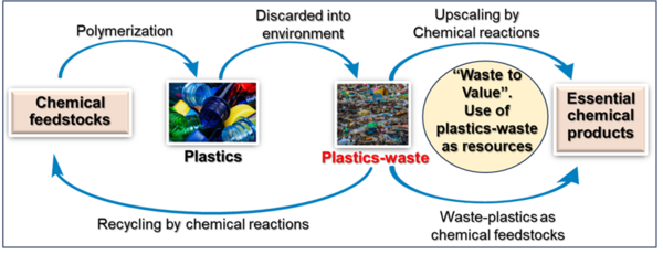 (4) Chemical recycling/upscaling of waste-materials (plastics- and bio-waste) and use them as resources for enabling circular economy.